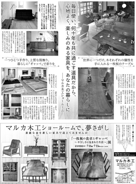 マルカ木工 朝日新聞広島県版 全15段記事体広告