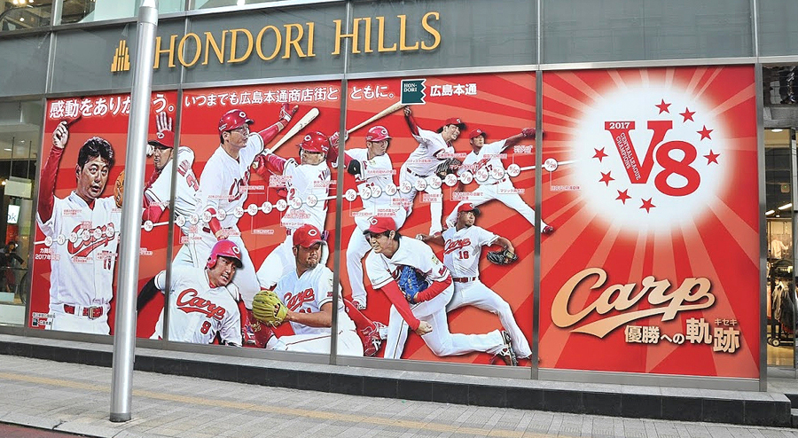 カープ優勝 本通ヒルズ大型シート
