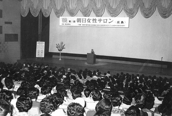 この時期に開催したのが「朝日女性サロン」です。これは女性の生きやすい社会作りを目的としたイベントで、1964(昭和39)年から、計62回開催しました。講師を呼び、教養や娯楽など、女性のためになる情報を発信。当時は女性にスポットを当てたイベントは珍しく、好評のサロンとなりました。この後に続く、イベント運営業務の基礎となった実績の一つです。